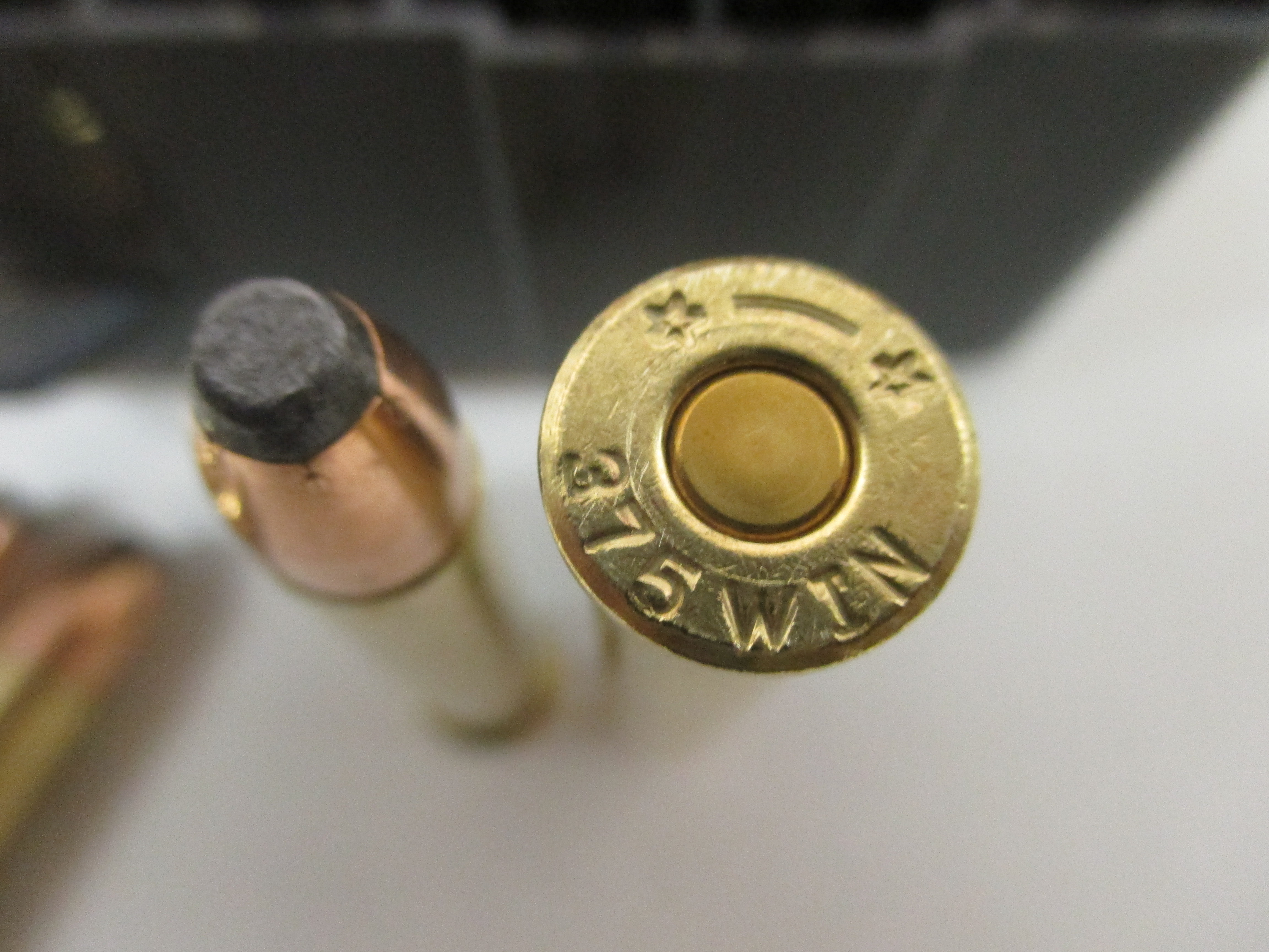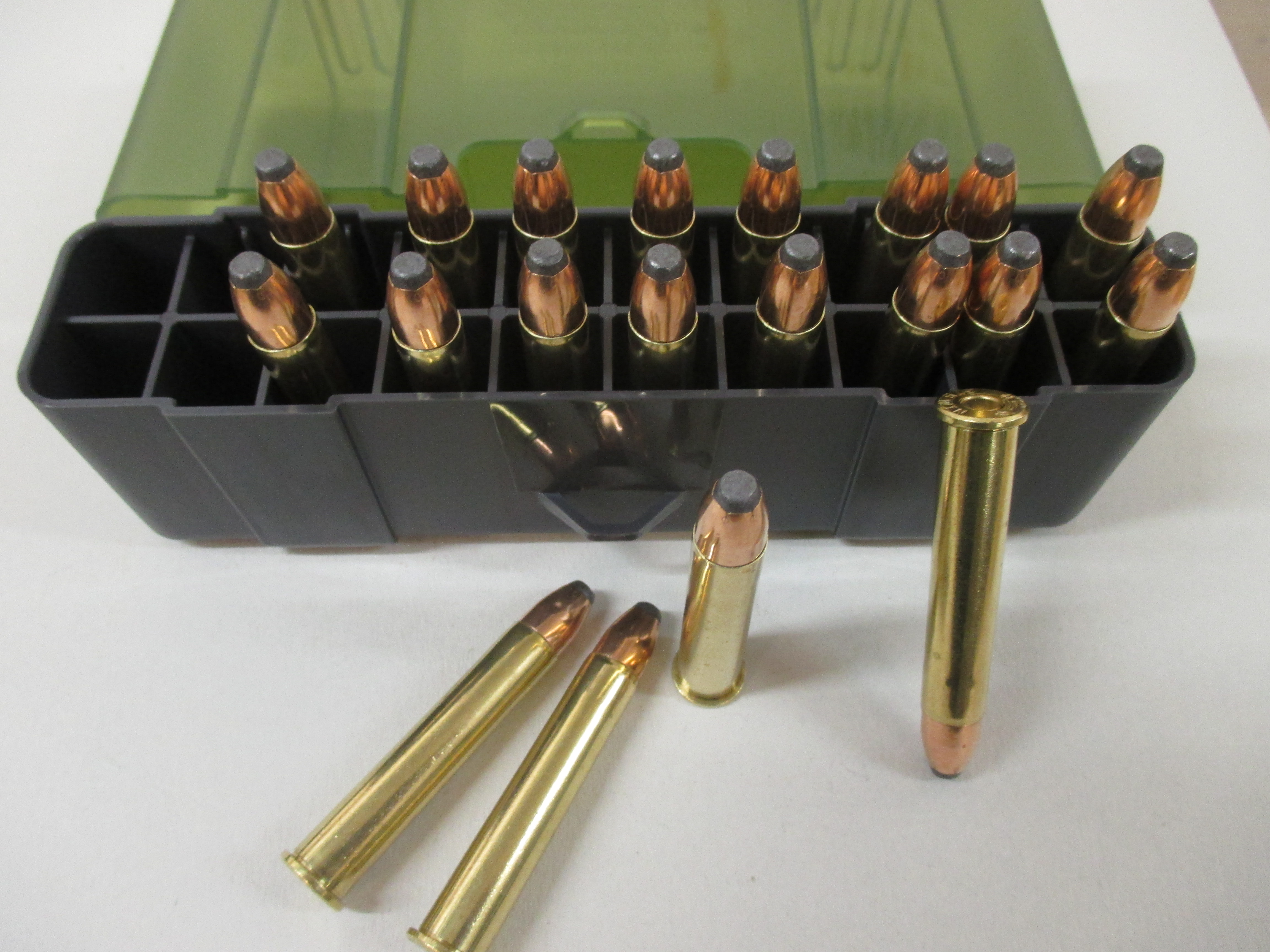 Munition, Custom, 375 Winchester mit 200grs. Sierra Flat Nose Geschosse und Starline Hülsen in Plano Kunststoffbox