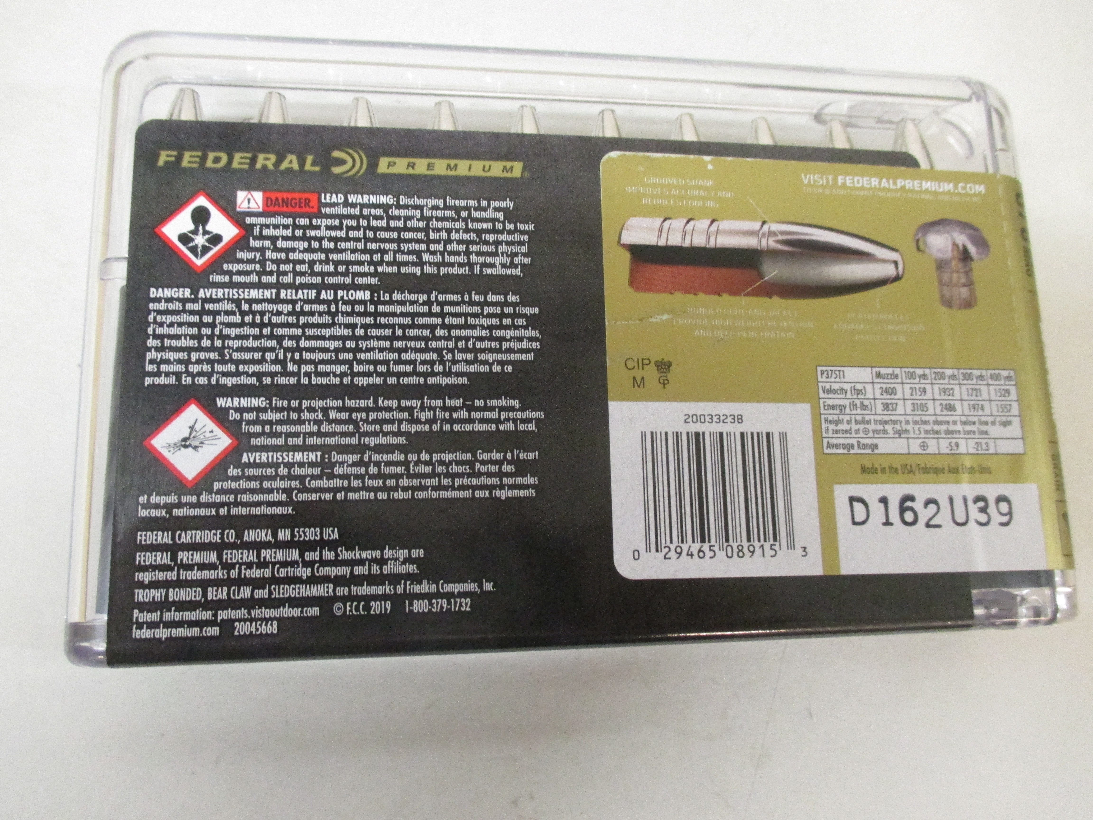 Munition Federal 375 H&H 300grs. Trophy Bonded Bear Claw