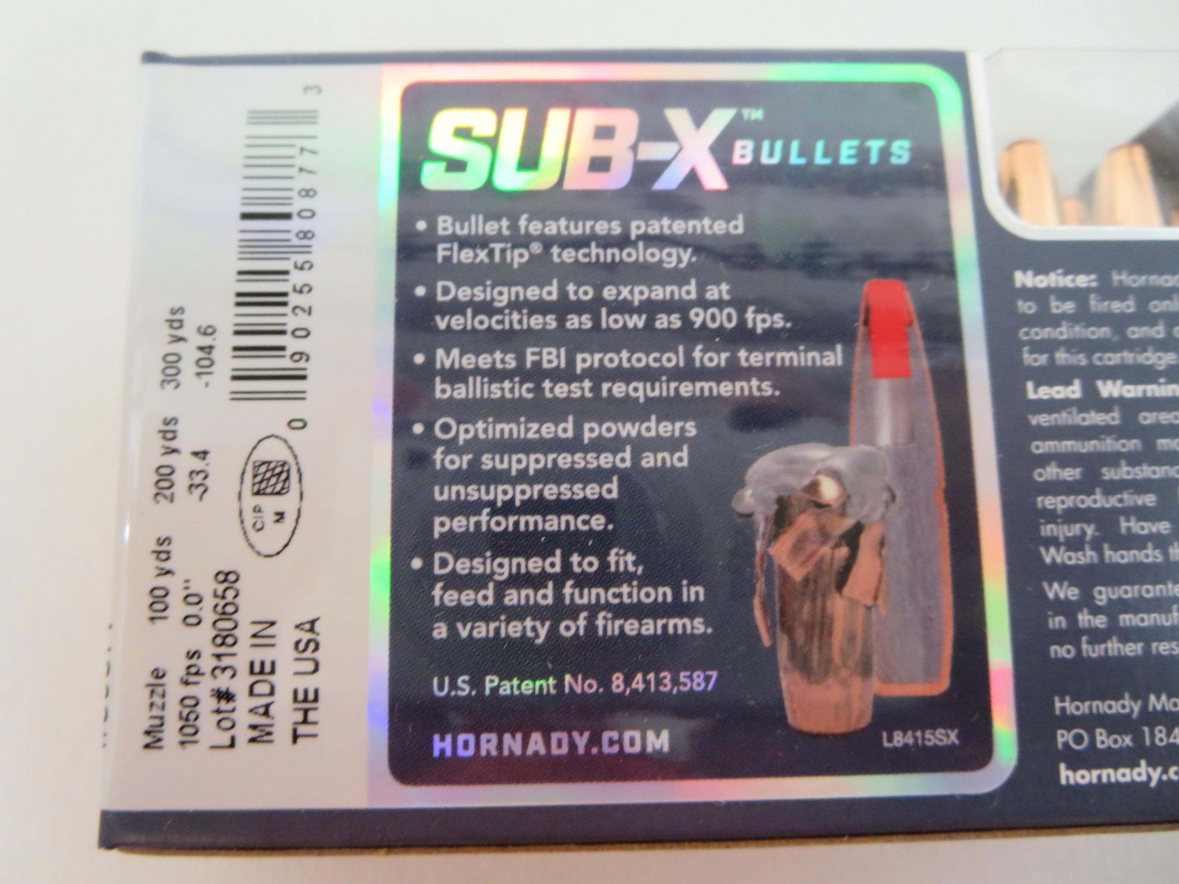 Munition Hornady 300 AAC Blackout 190grs. Sub-X Subsonic