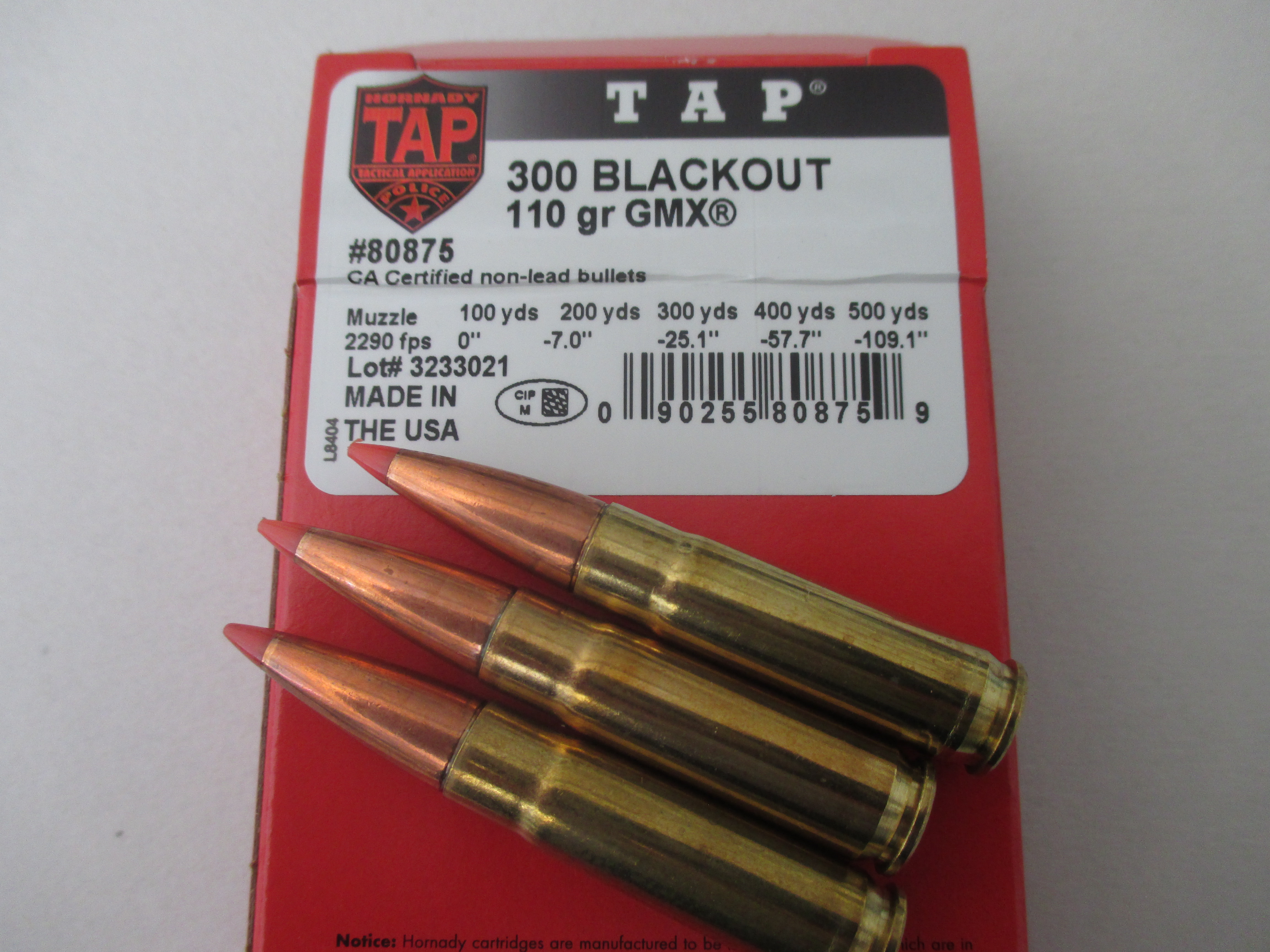 Munition Hornady 300 Blackout TAP 110grs. GMX
