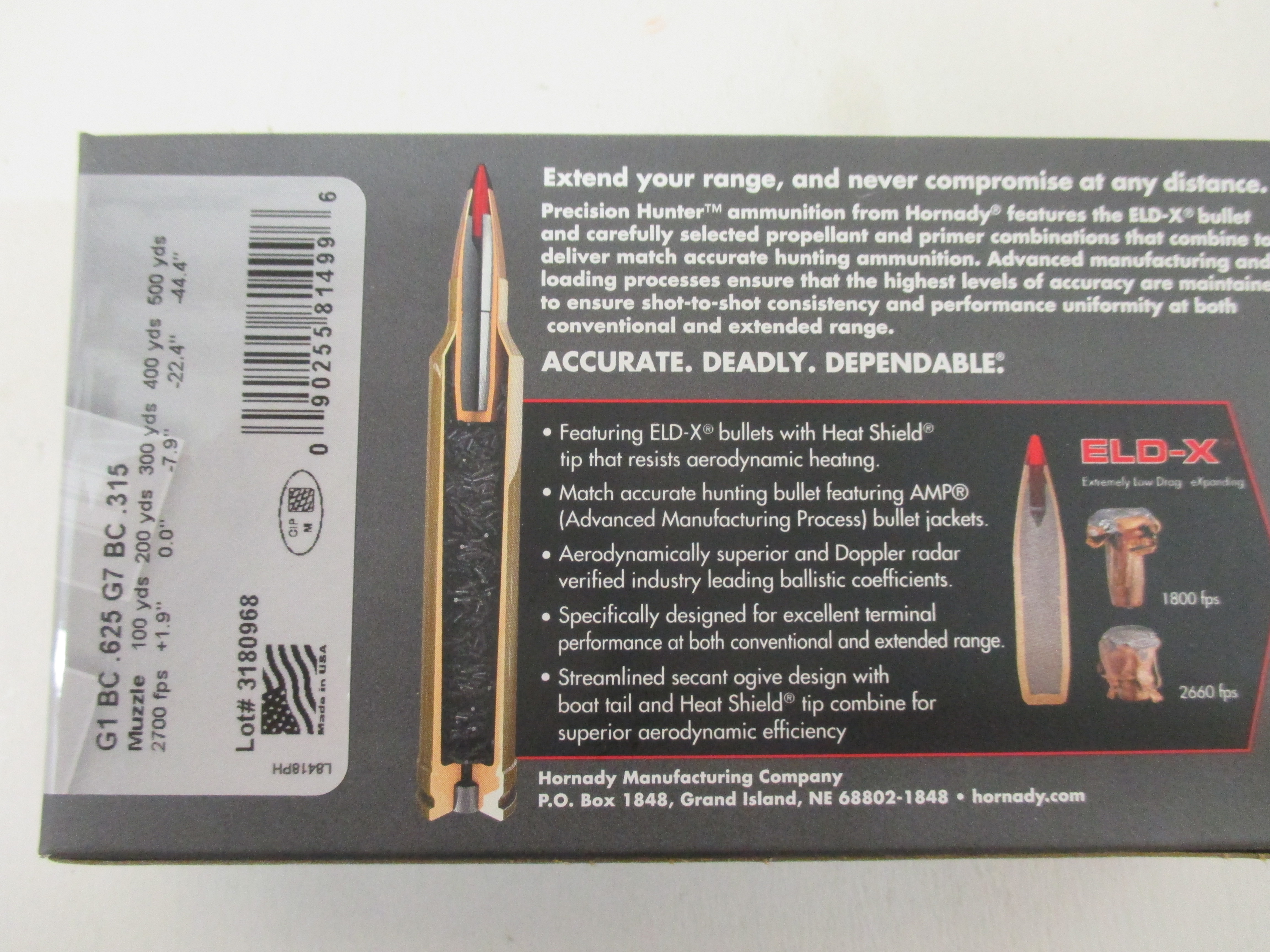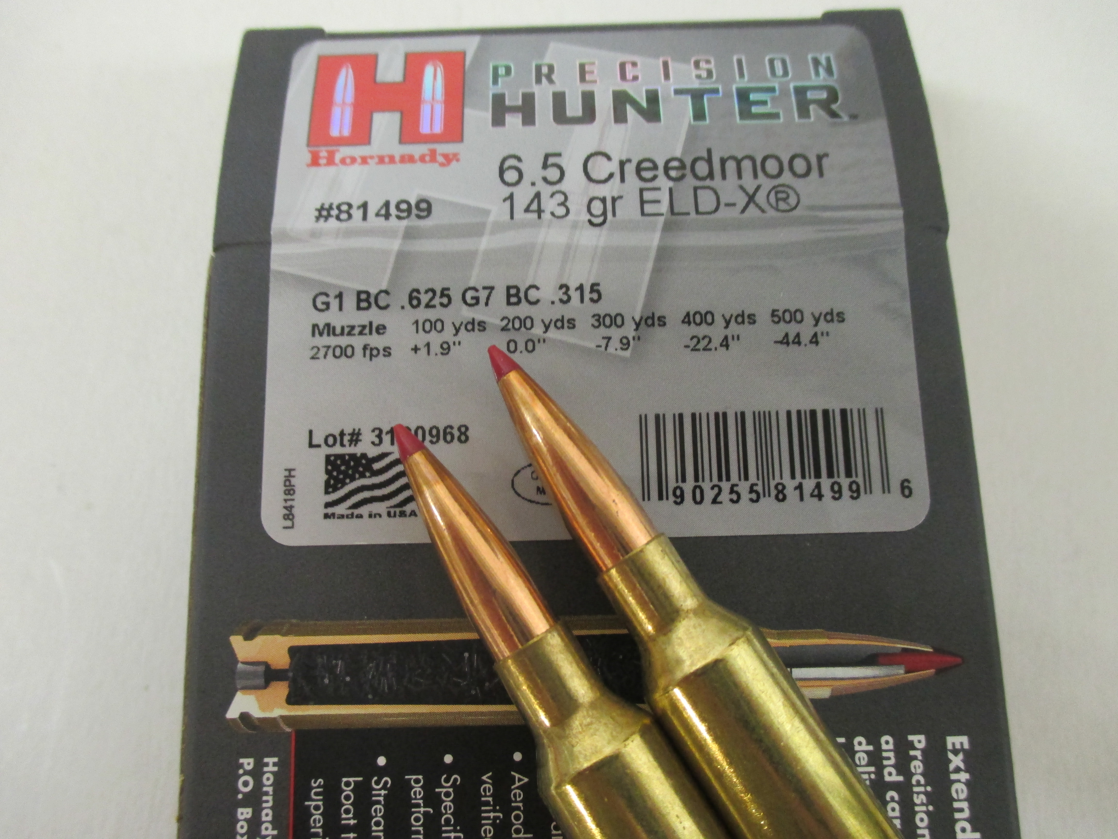 Munition Hornady 6.5 Creedmoor, Precision Hunter 143grs. ELD-X