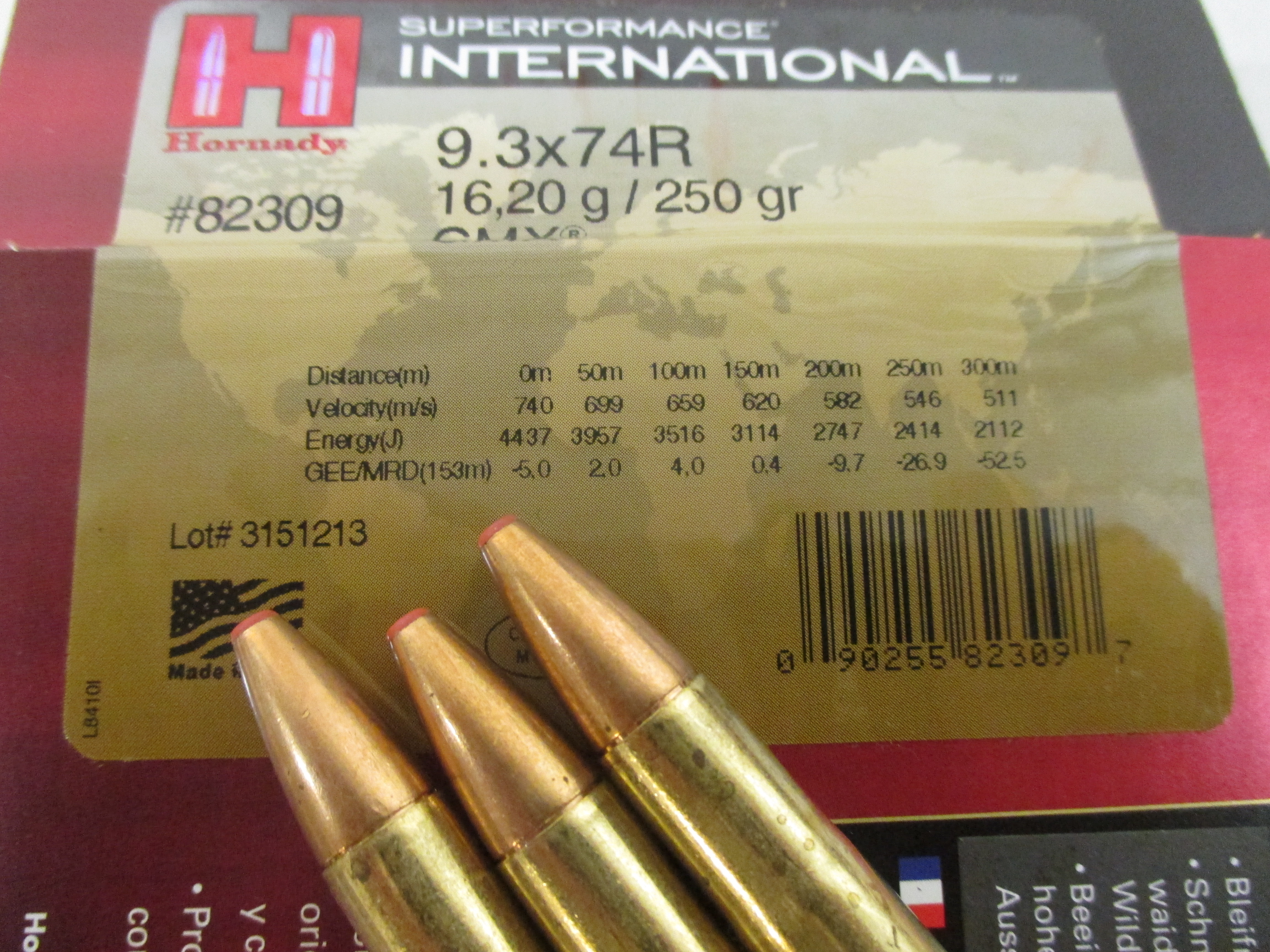 Munition Hornady 9.3x74R 250grs. GMX Superformance Int.