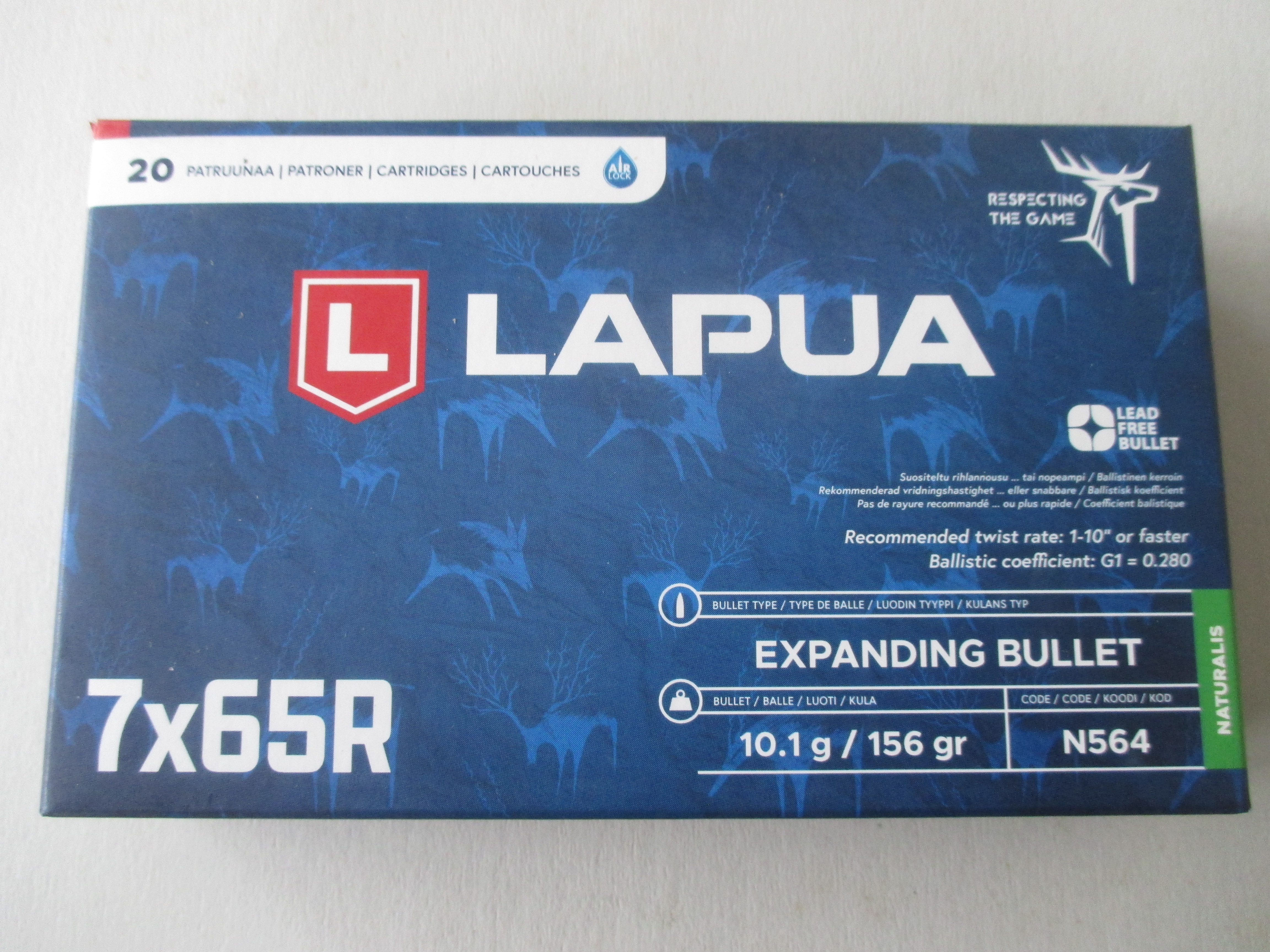 Munition, Lapua 7x65R, 156grs. /10.1g. Naturalis bleifrei