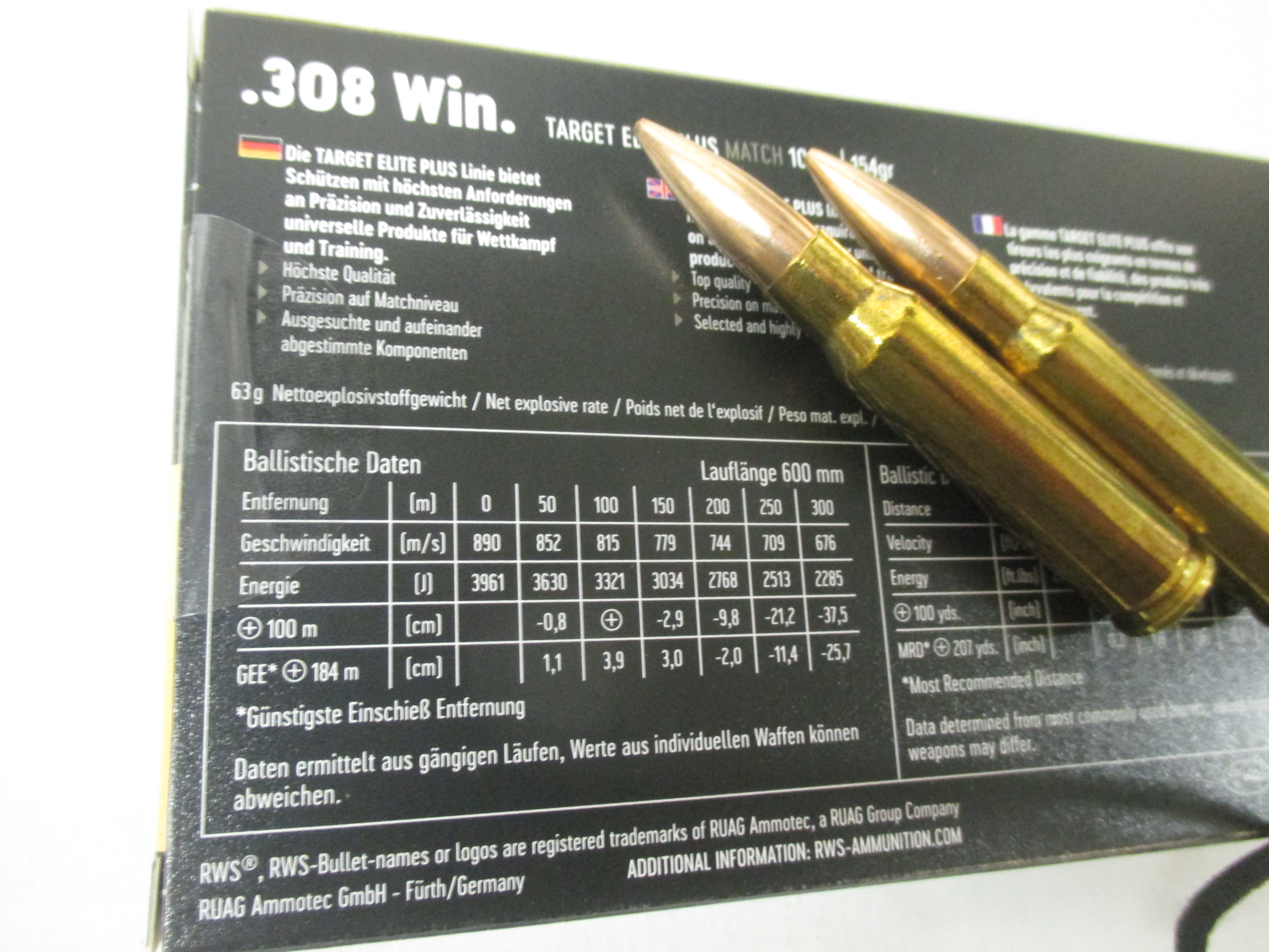 Munition RWS 308 Winchester 154grs. Target Elite Plus