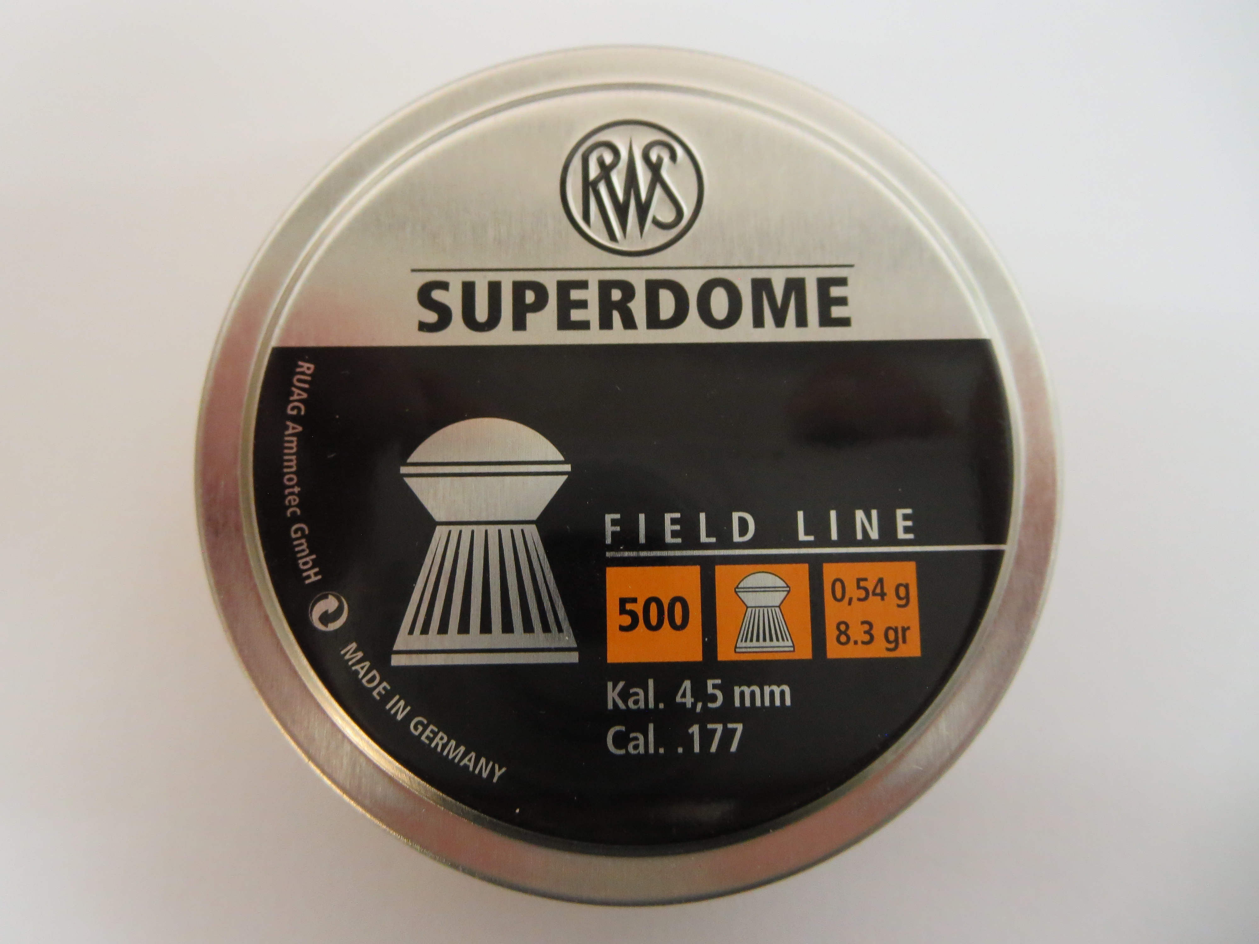 Munition, Luftgewehrkugeln, 4.5mm . 177, RWS Superdome, 0.54g, Bulldog Form für hohe Energieabgabe im Ziel und Tiefenwirkung,