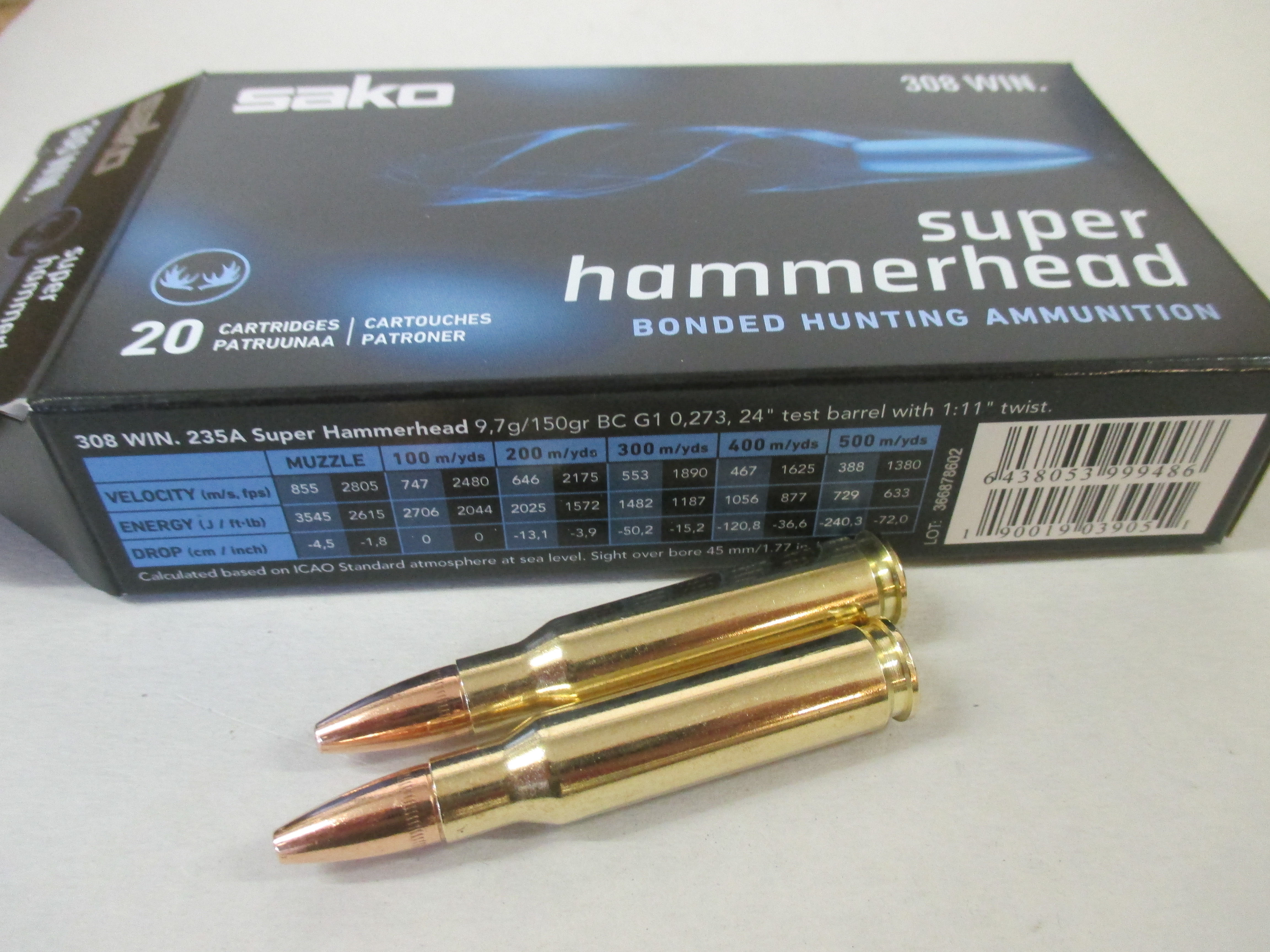 Munition Sako 308 Winchester Super Hammerhead 150grs.
