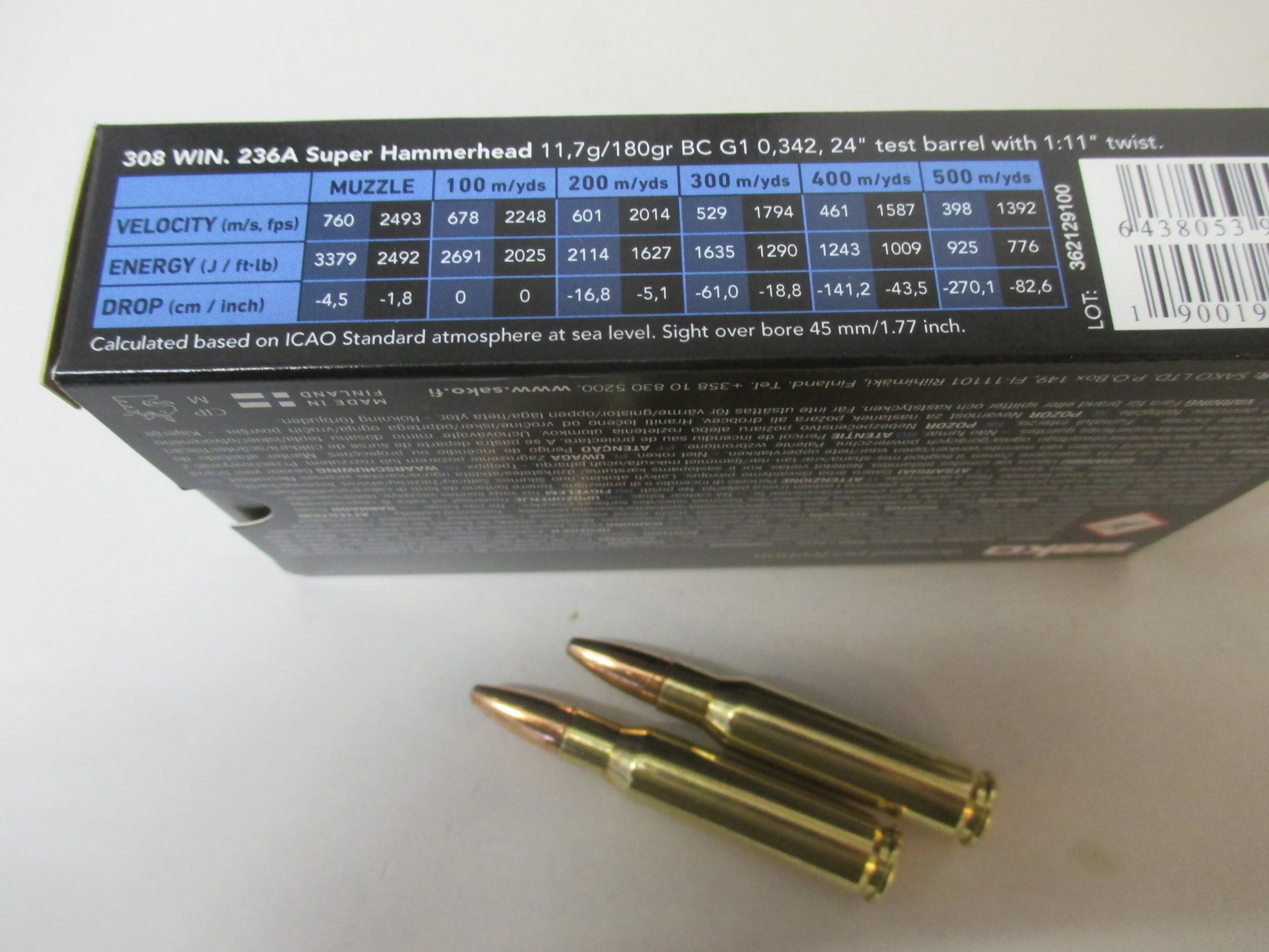 Munition Sako 308 Winchester Super Hammerhead 180grs.