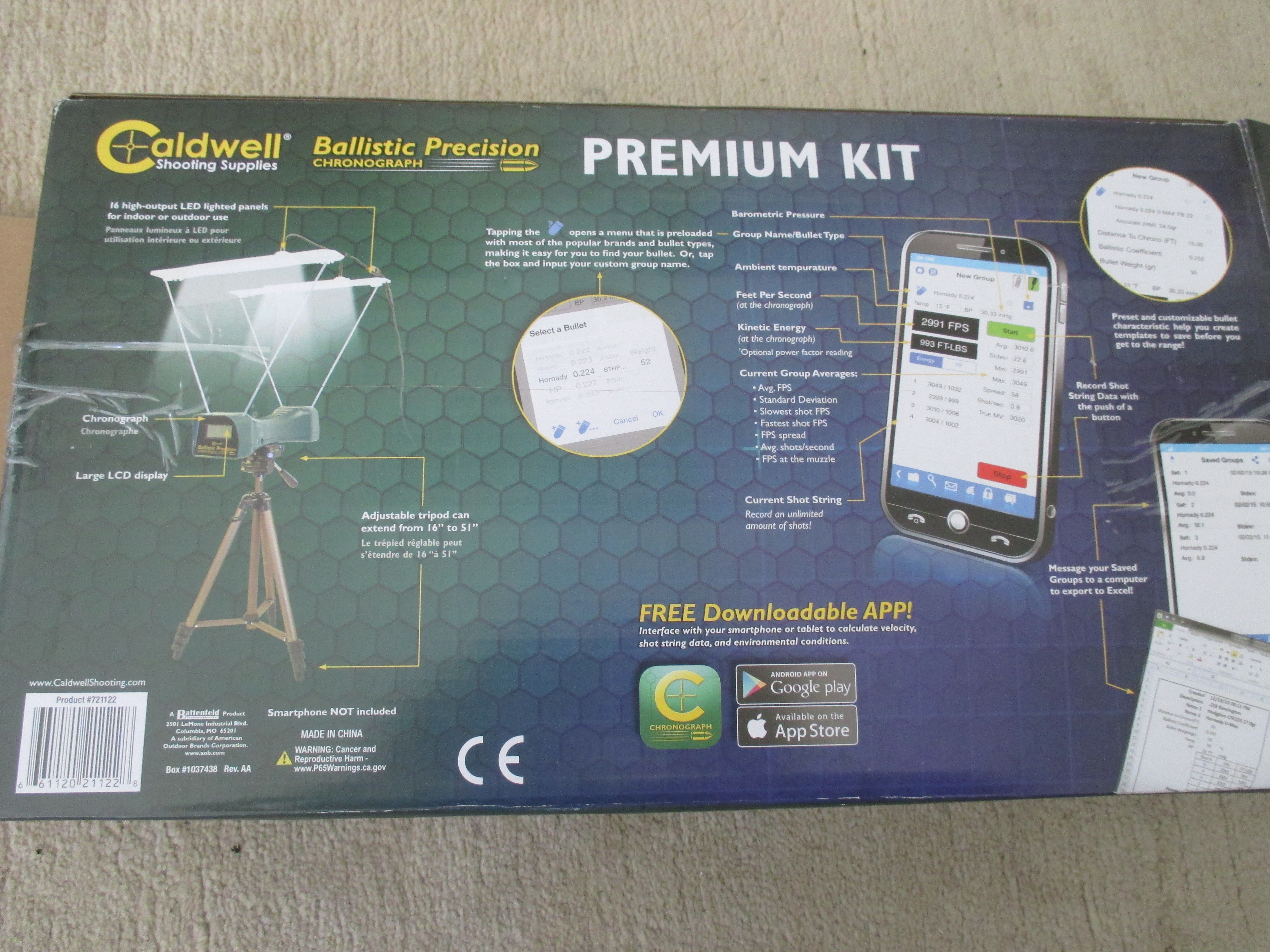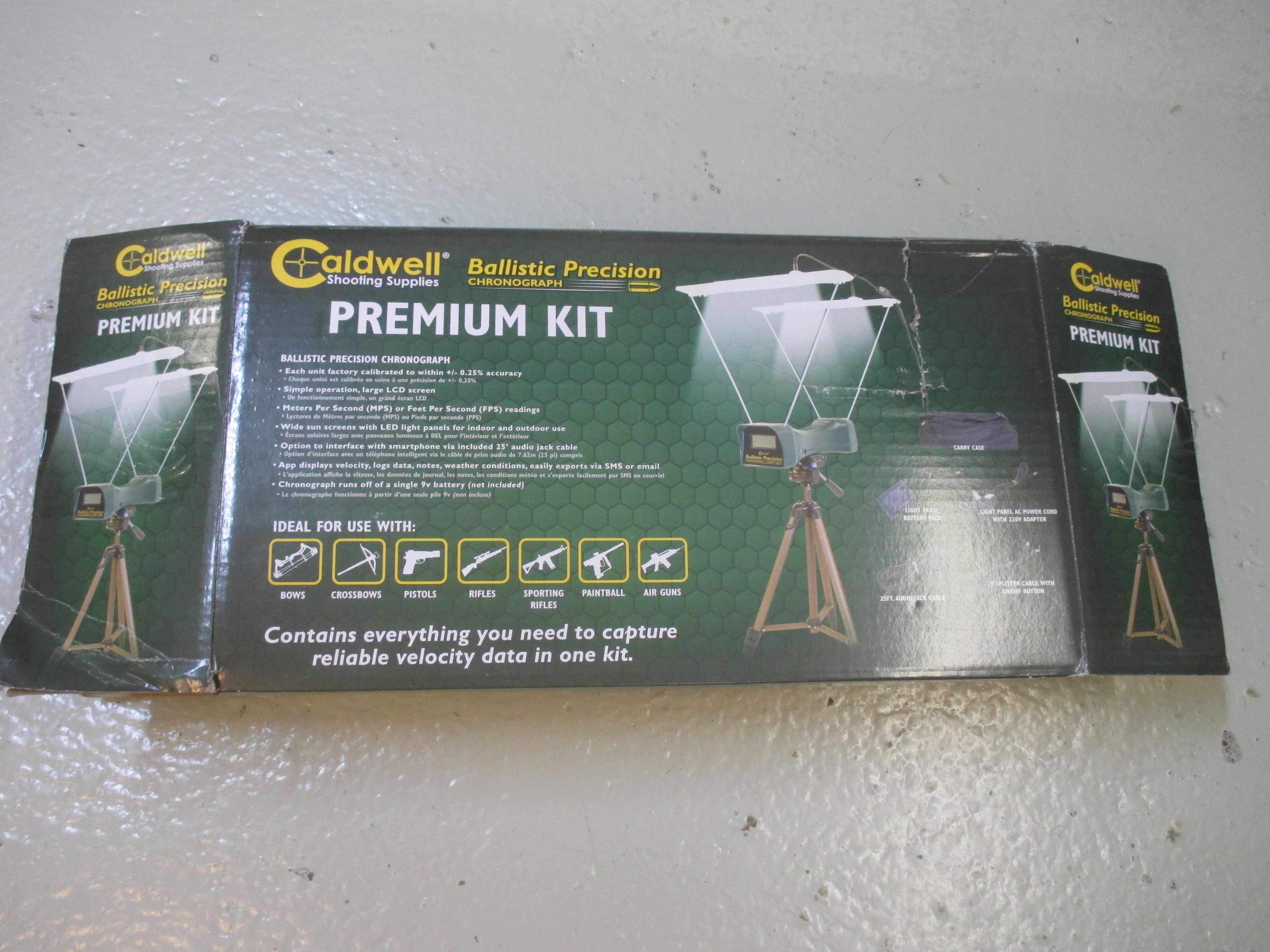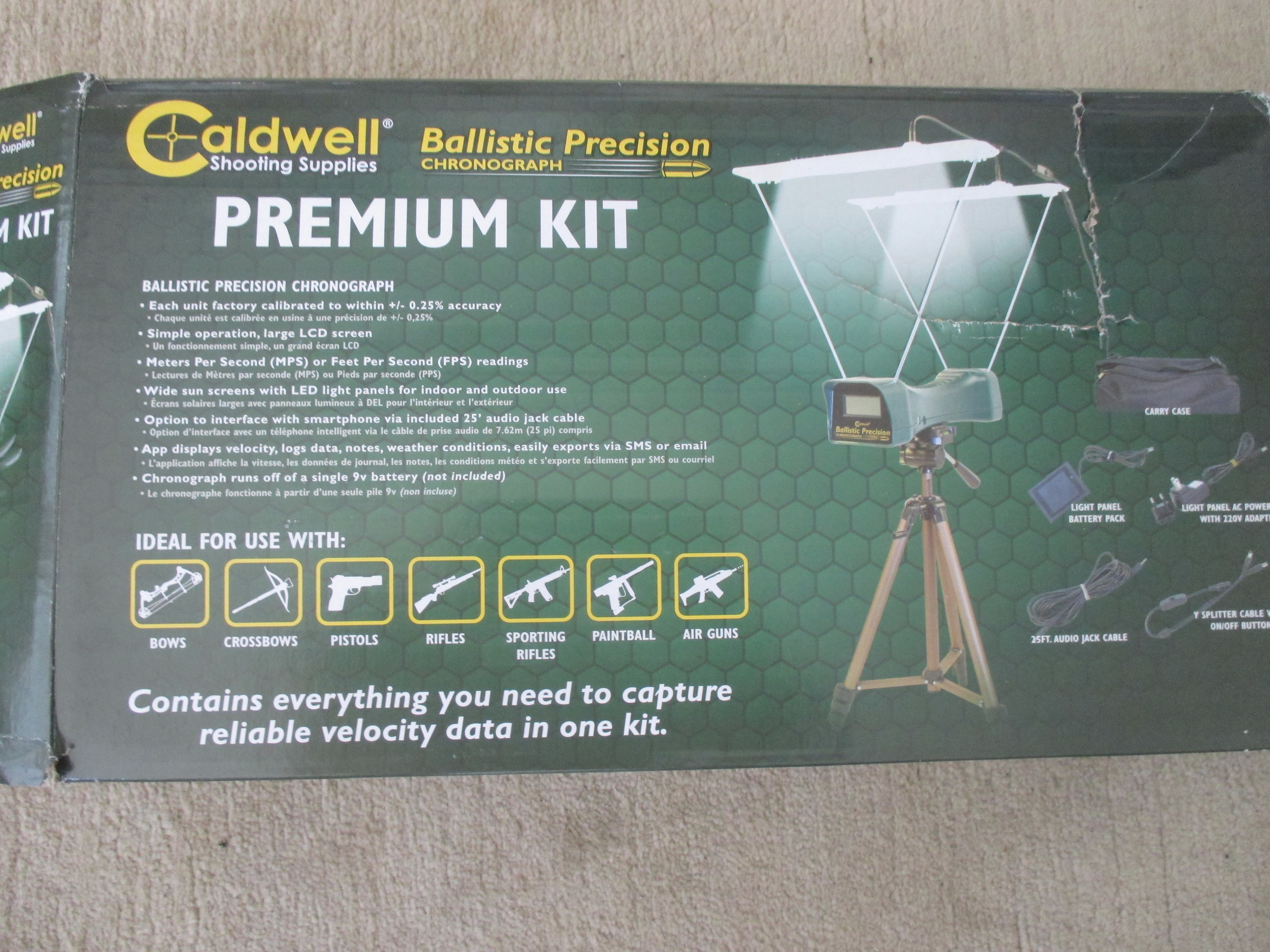 Demogerät: Caldwell Geschossgeschwindigkeitsmesser Premium Kit für Langwaffen (Büchse und Flinte) und Faustfeuerwaffen, m/s Messung, Beleuchtungseinheit für Indoor Messungen, Stativ, Transporttasche,