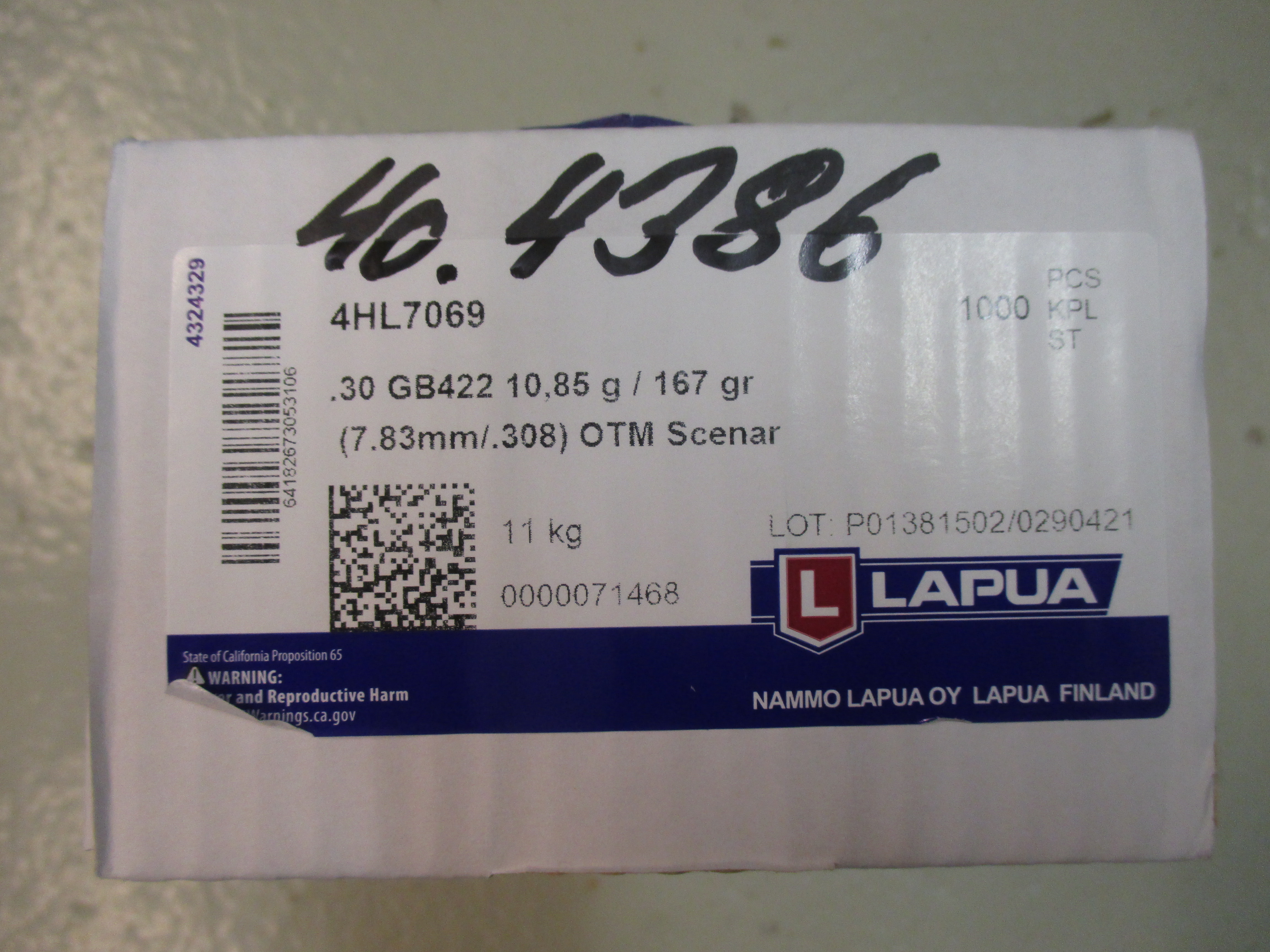 Lapua .308, .167grs. Scenar GB422