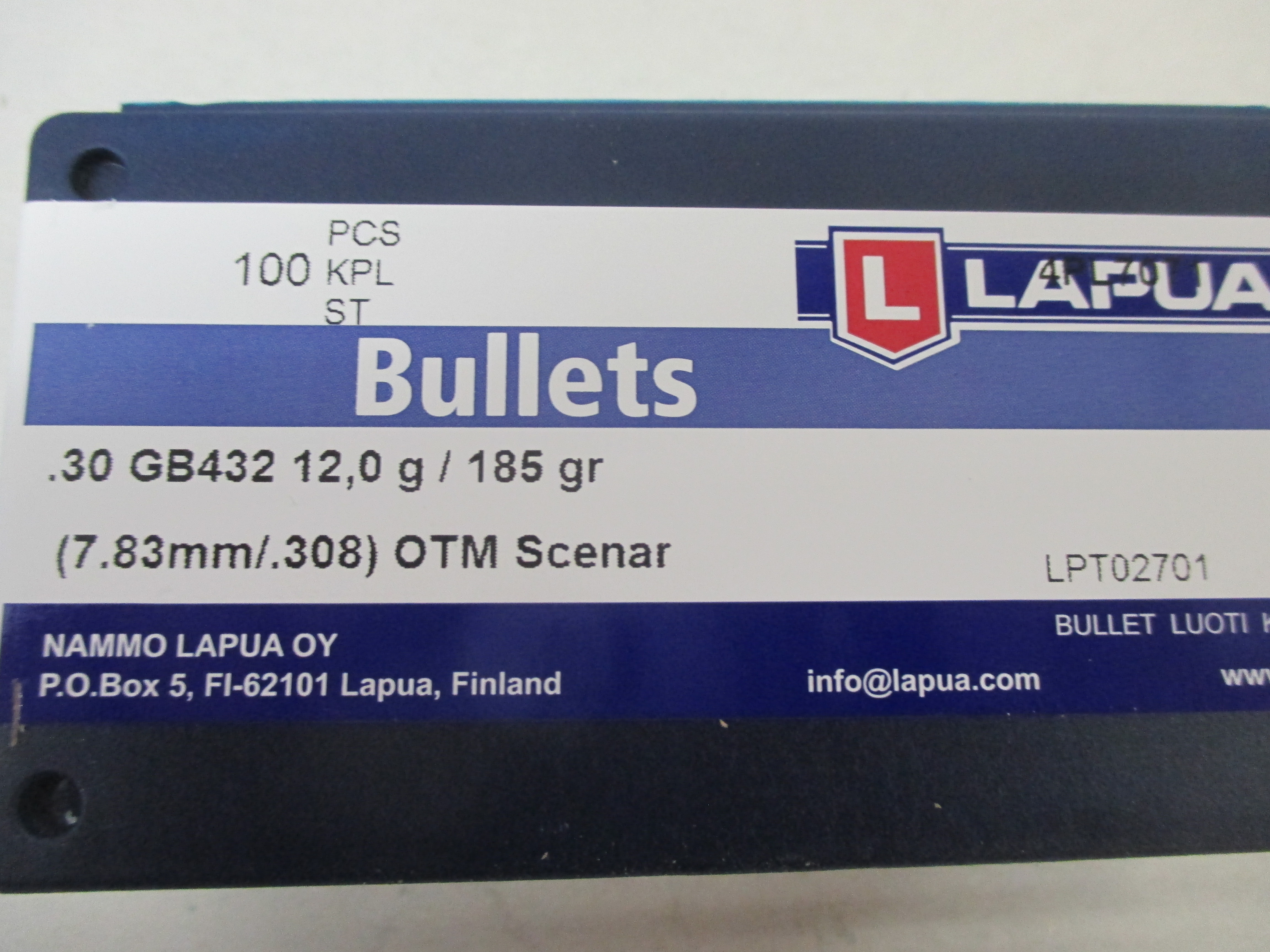 Lapua .308, 185grs. Scenar GB432