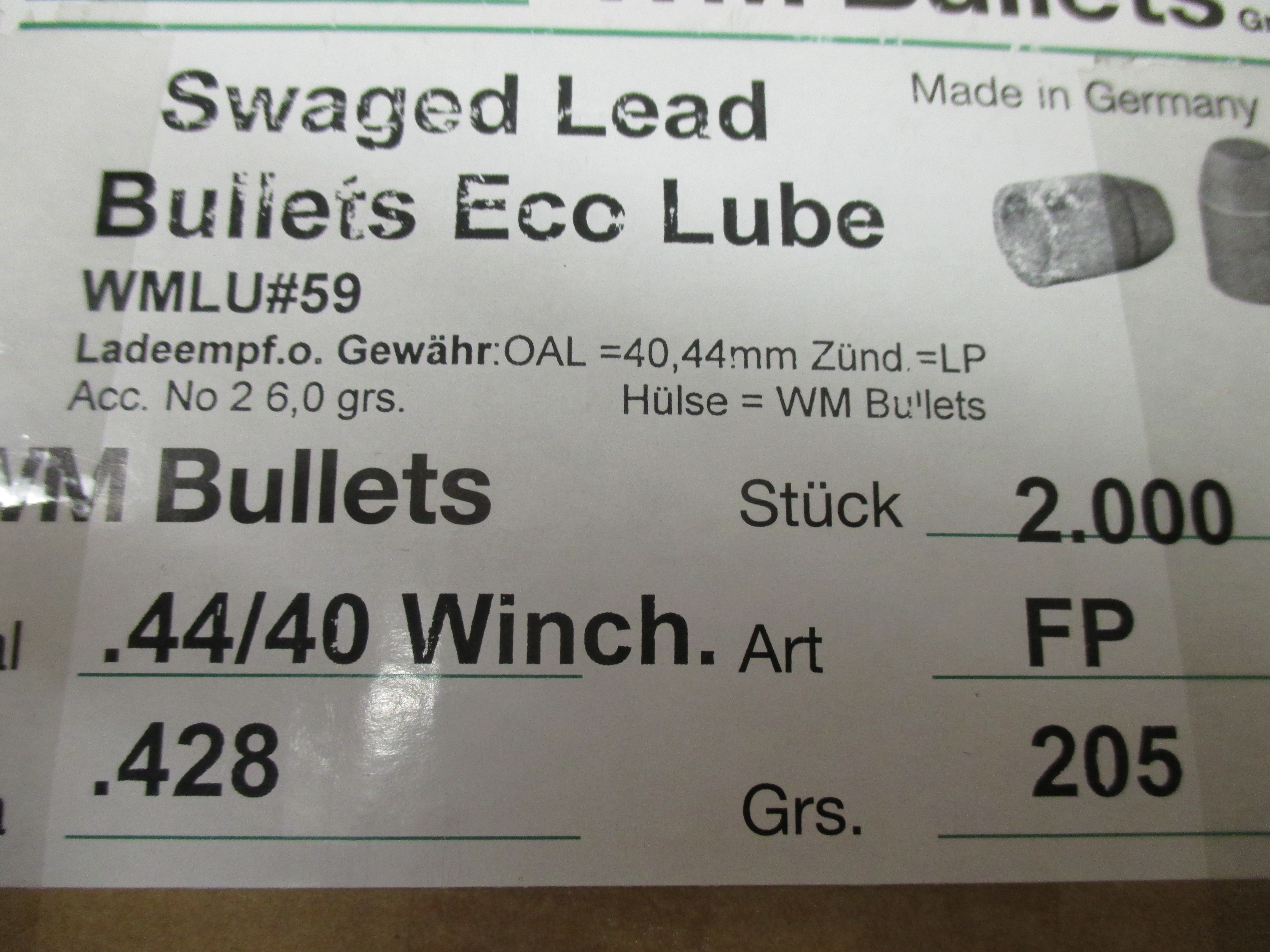 WM 44-40, 205grs. FP .428 Eco Lube